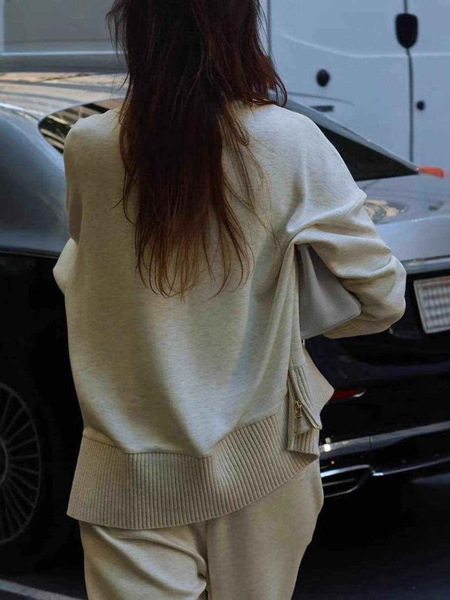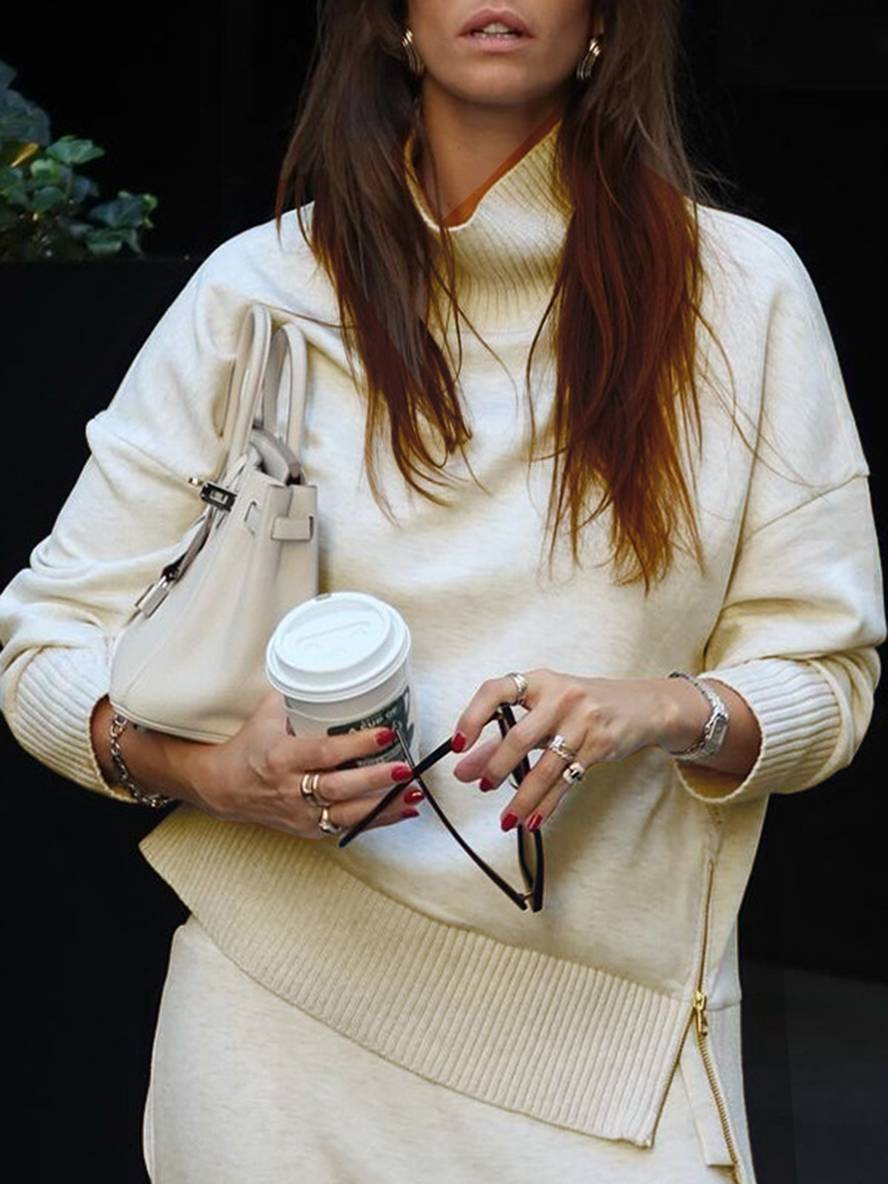 ensembles avec pantalon unicolore col roulé col montant manches longue femme élégant sport décontracté ample